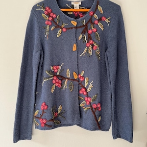 Cardigan Floral Embroidered Cottage Cutie Floral Embroidered Coquette Sweater Cardigan Cozy Chunky Sweater
