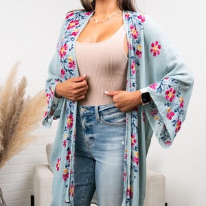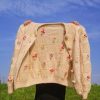 This cozy cardigan bursts with hand-stitched floral details in vibrant colors. Made from soft knit fabric, it offers both comfort and artistry. A perfect layering piece to express your love for craftsmanship and style.