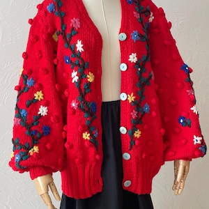 Women’s Knitted Floral Cardigan – Bright Flower Embroidered Cardi – Embroidery – Sustainable Clothing Fairly Traded – Pachamama
